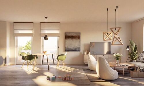 Loggien werden zu 50%, Balkone und Terrassenflächen nur zu 25% in die Gesamtfläche eingerechnet (nach WoFlV 2003). Visualisierungen und Pläne dienen der Veranschaulichung des Kaufgegenstands, enthalten aber keine Eigenschaftszusicherungen