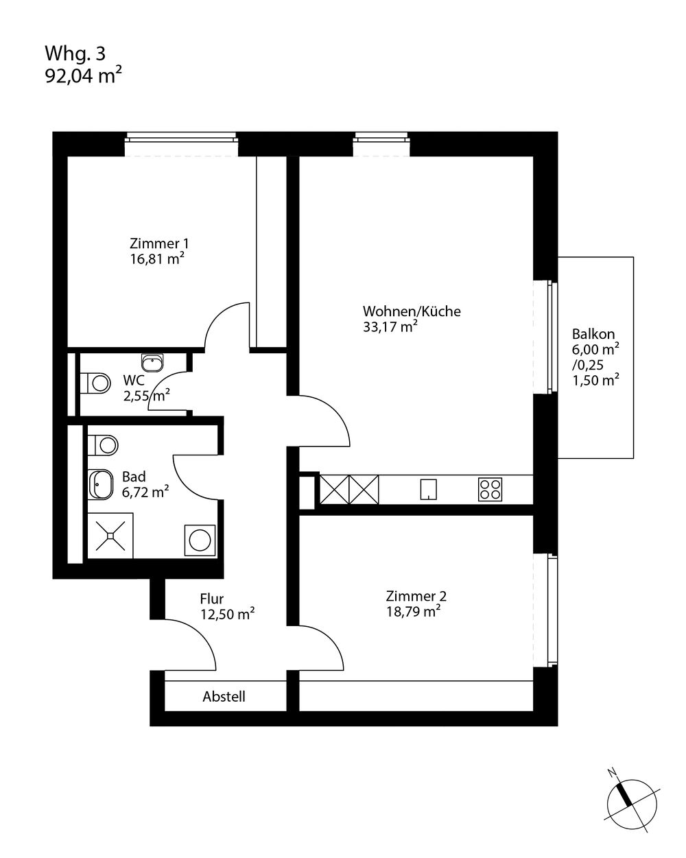 Loggien werden zu 50%, Balkone und Terrassenflächen nur zu 25% in die Gesamtfläche eingerechnet (nach WoFlV 2003). Visualisierungen und Pläne dienen der Veranschaulichung des Kaufgegenstands, enthalten aber keine Eigenschaftszusicherungen